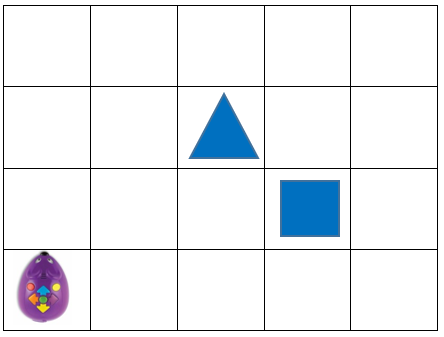 Ребята, геометрические фигуры любят играть в прятки. Квадрат и треугольник спрятались от мышек в клеточках нашего поля. Нам нужно помочь мышкам найти правильный путь до фигур. Разместите на своем поле мышку в нижнем левом углу мордочкой вверх, а геометрические фигуры по образцу.