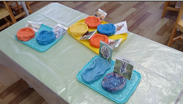 После того как «пластилин» готов, дети лепят из него мисочки для тигрят.