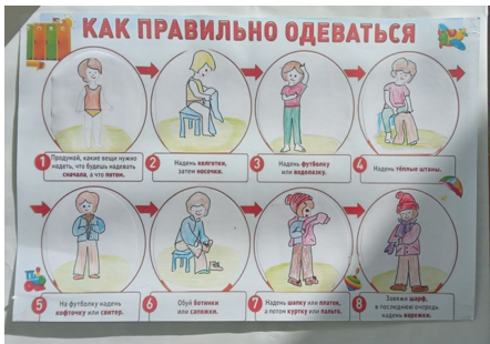 Постепенно последовательность действий в картинках будет усваиваться, дети перестанут ошибаться и станут одеваться правильно и быстро.