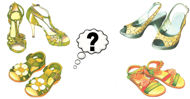 Босоножки, сандалии, туфли, тапочки, ботинки, кроссовки, сапоги, сланцы, мокасины, пинетки, унты, валенки, обувь, носок, подошва, каблук, шнурки. |