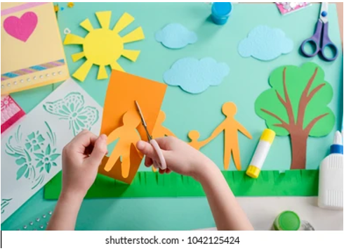 · Запросы: kids drawing big poster, child cutting paper shapes, craft materials organized.