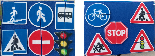 5. «Собери половинки дорожного знака»